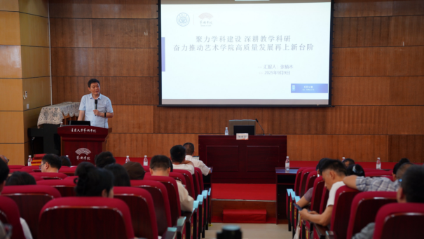 2025年9月18日下午,艺术学院2025年秋季学期第1次全院教职工大会在学院办公楼学术报告厅召开。学院党委书记蒋华林,院长张楠木等领导班子成员出席会议,学院全体教职工参加会议。会议由蒋华林主持。会议传达学习了习近平总书记2025年9月3日在纪念中国人民抗日战争暨世界反法西斯战争胜利80周年大会上的重要讲话精神、在纪念中国人民抗日战争暨世界反法西斯战争胜利80周年招待会上的重要讲话精神和9月8日给全国特岗教师代表的重...