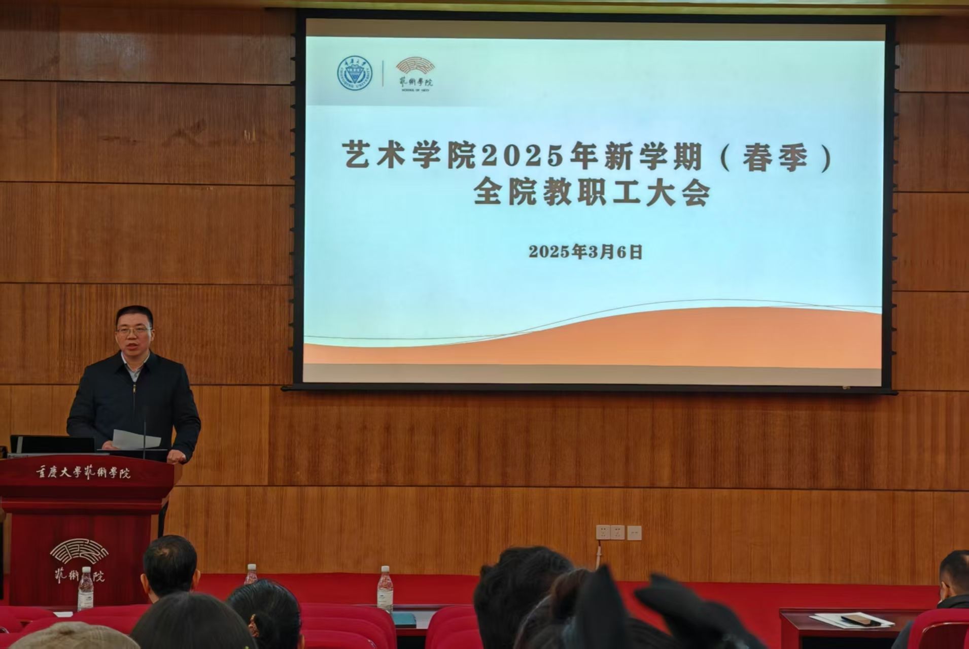 2025年3月6日下午,重庆大学艺术学院在学院办公楼报告厅召开2025年春季学期首次全院教职工大会。学院党委书记蒋华林主持会议并讲话,院长张楠木部署学院2025年重点工作,院领导及全体教职工参加会议。张楠木解读了《中共重庆大学艺术学院委员会 艺术学院2025年工作要点(征求意见稿)》,从政治建设、人才培养、学科建设、科学研究、人才引育、国际国内合作、美育教育、内部治理、党的建设等九个方面部署了学院2025年重点工作...
