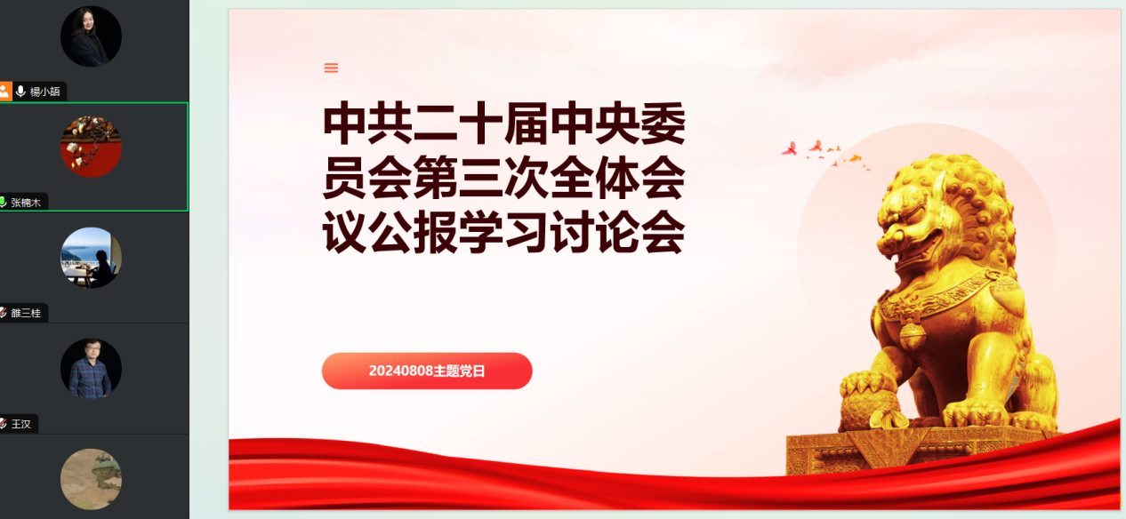 2024年8月8日晚上,污污漫 美术学专业教师党支部于暑假期间开展学习二十届三中全会精神线上主题党日活动。支部书记肖力主持,全体支部党员参加。支部宣传委员杨小语首先对党的二十届中央委员会第三次全体会议公报进行领学,随后全体党员进行了交流讨论。张楠木认为,会议指出中国社会正在面临的深化变革问题,也是我们个人和院系正面对的挑战,需要时刻保持警醒,实事求是,迎难而上。雒三桂认为,会议阐述的文化建设...