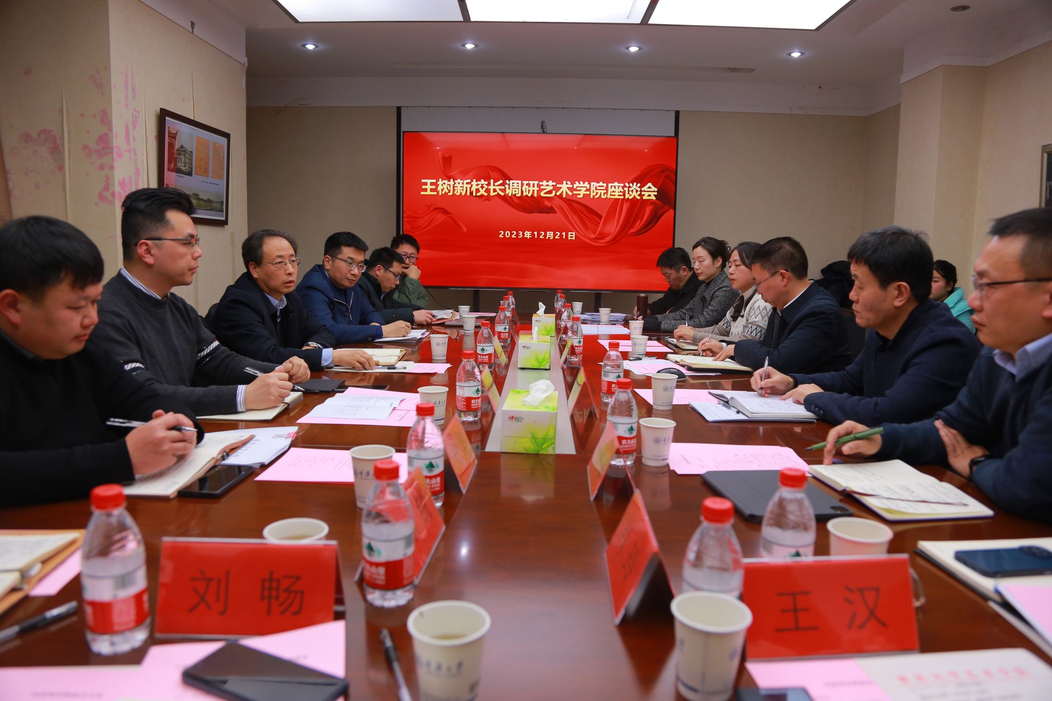 在艺术学院建院25周年的重要历史节点,在新时代推动学院发展的关键十字路口,2023年12月21日下午,重庆大学校长、中国工程院院士王树新来到艺术学院调研座谈、指导学院发展。党办校办、发规处、人事处、本科生院、社科处、研究生院、国际处(留学中心)等相关职能部门负责人陪同调研,艺术学院领导班子成员、系主任、教师代表、辅导员代表和学生代表参加调研座谈。学院党委书记蒋华林主持调研座谈会。院长张楠木代表学院作了...