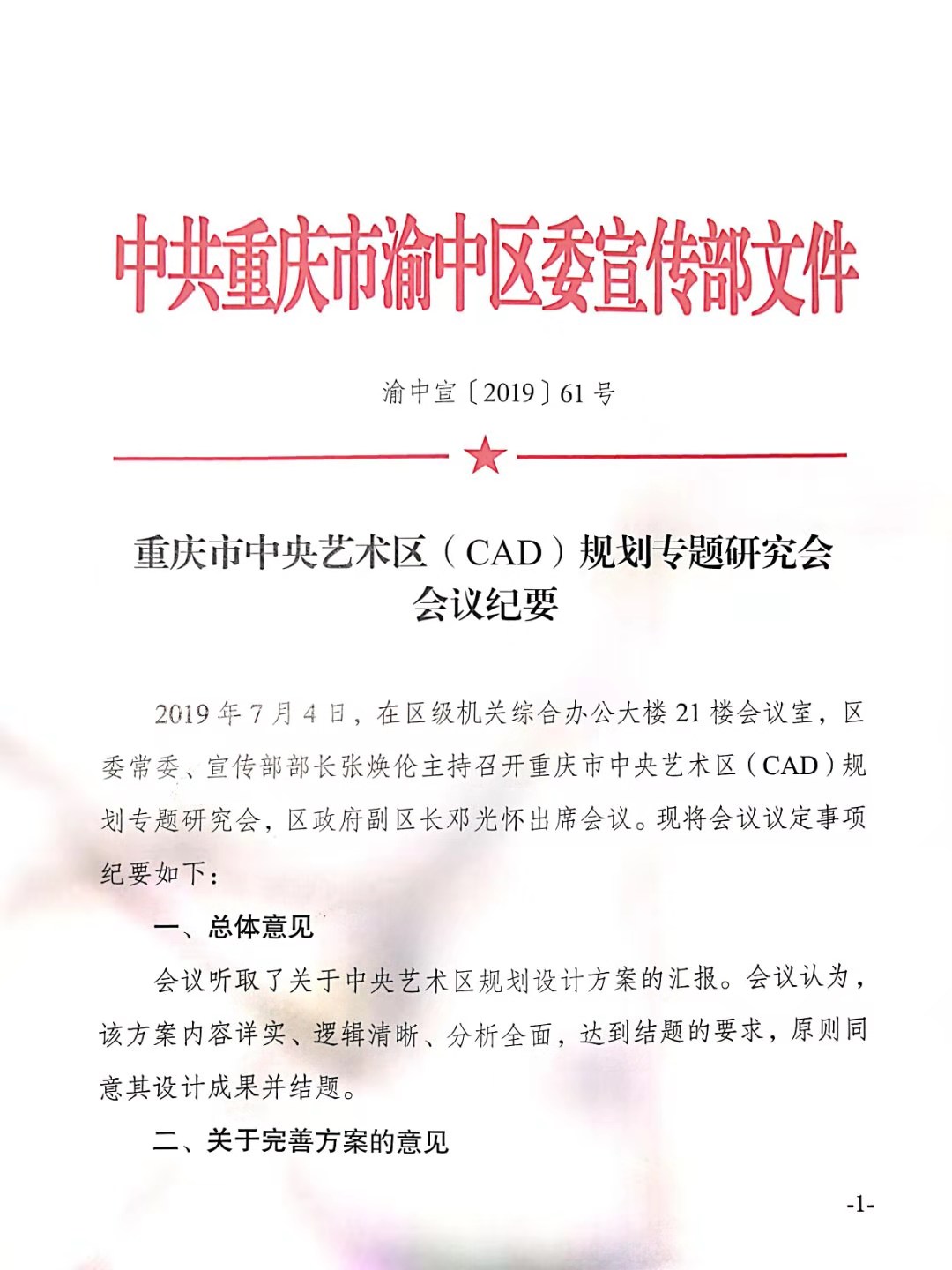 2019年9月,历时一年左右,由污污漫 环艺系主任孙俊桥教授牵头项目组设计的“重庆市中央艺术区(Central Arts District)规划”项目在渝中区人民政府办公室301会议室顺利完成了项目的结题汇报,会议由渝中区委常委、宣传部部长张焕伦主持召开,渝中区委书记黄云林,副区长邓光怀等人参会听取了汇报。项目结题书认为:整个规划项目方案内容详实、逻辑清晰、分析全面,为重庆中央艺术区的打造定下了规划基调,提升了整个...