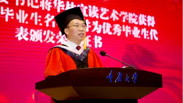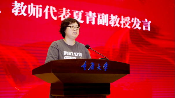 教师代表夏青副教授在发言中与同学们共同回忆了一起学习的点点滴滴,祝贺同学们学会了与人为善、独立思考能力。她希望同学们艺术之路长青,勇敢地去面对每一个挑战、拥抱每一个机遇。