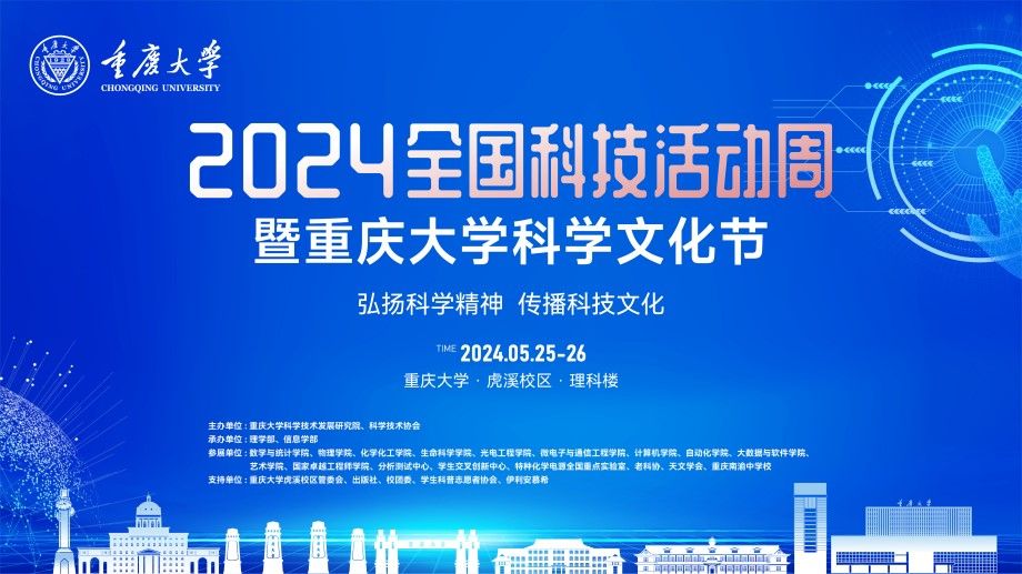 本次科学文化节以“弘扬科学精神、传播科技文化,激发成长动力、启迪创新思维”为主题,由重庆大学科学技术发展研究院、科学技术协会主办。理学部、信息学部承办。数学与统计学院、物理学院、化学化工学院、生命科学学院、光电工程学院、微电子与通信工程学院、计算机学院、自动化学院、大数据与软件学院、艺术学院、国家卓越工程师学院、分析测试中心、学生交叉创新中心、特种化学电源全国重点实验室、老科协、天文学会、重庆南渝中学校参展。虎溪管委会、出版社、校团委、学生科普志愿者协会、伊利安慕希支持。