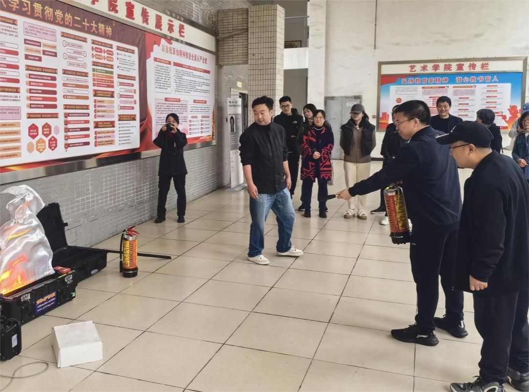 2023年11月23日中午,在学校保卫处的现场指导下,艺术学院在学院办公楼开展了消防应急疏散演练活动。