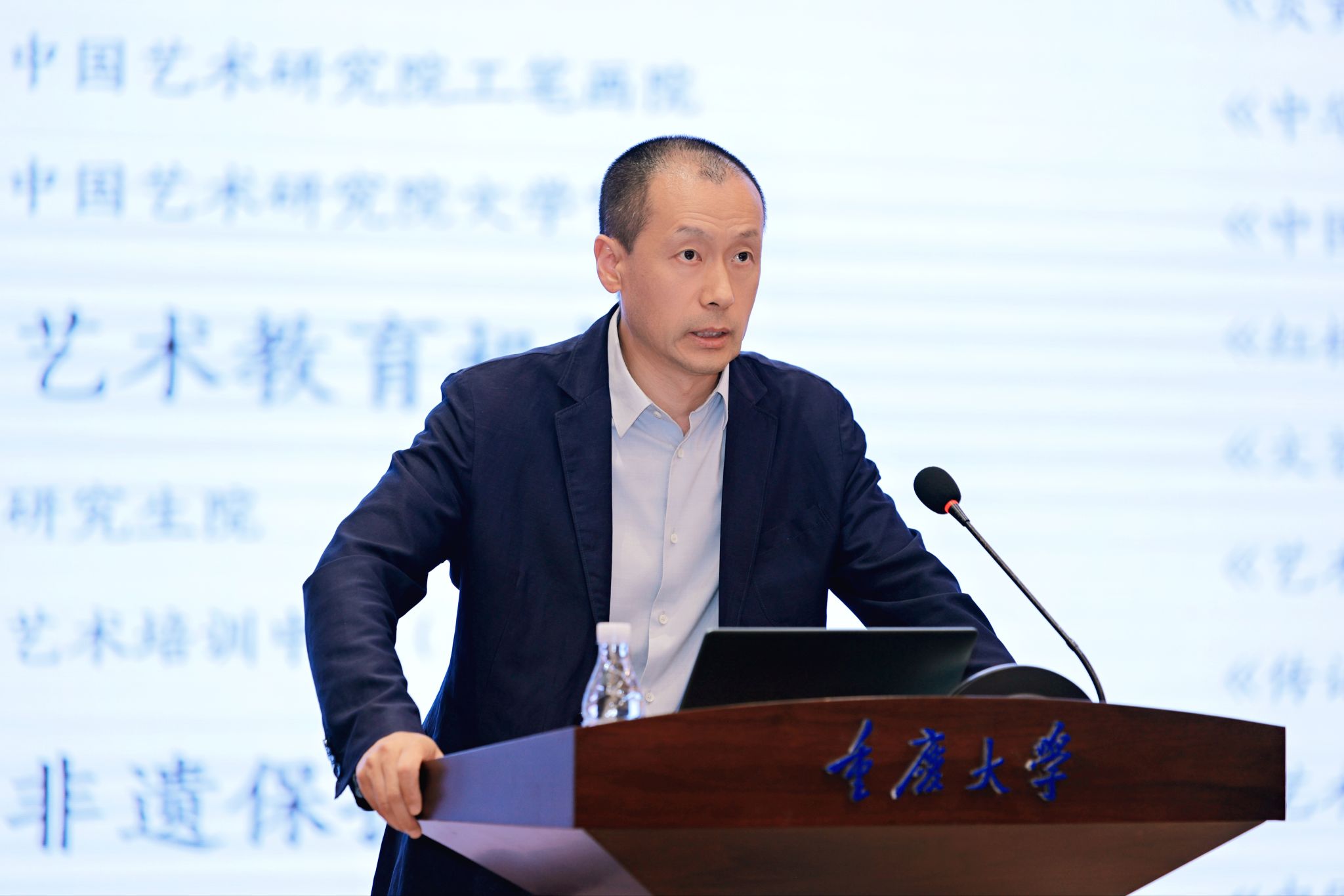 中国艺术研究院艺术培训中心(后续文中简称“中心”)主任刘波以《一线资源赋能的西部美育新解法》为主题,详细介绍中国艺术研究院的发展历史和现有学术、艺术资源,以及艺术培训中心助力地方艺术发展的成功案例。刘波强调了重庆大学举办此次交流活动对西部美育推动的积极作用,通过跨区域协作激活生态与民族文化资源,助推地域美育高质量发展。以重庆大学作为依托,通过进一步洽谈合作,尝试建立西南地区美育中心,进行民族艺术采风,在这方面,中国艺术研究院有雄厚的积累和丰富的经验;可以从高校师资力量入手助力西部高校美育发展,通过讲座、培训、访问学者等方式带动整体美育水平提升。