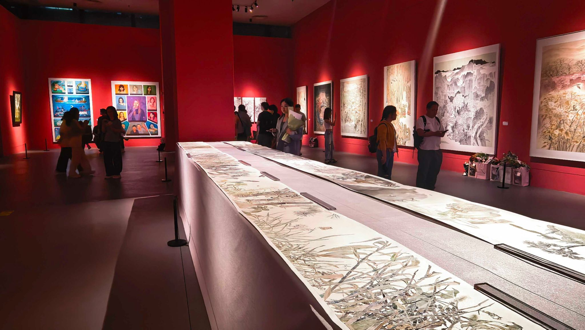 本次展览共展出不同专业门类、艺术形态、审美风格的作品100余件。绘画作品在继承传统与探索创新、自然造化与人文精神、个体情感与社会关怀、内涵深化与技法综合的交互升华中,推动了艺术创作的新样态;设计作品以面向国家战略需求、服务地方社会经济为目标,深化学科交叉的创新动力,探索设计与中国式现代化、社会高质量发展、优秀传统文化创造性转化、中华美育精神传播的新动态、新实践;舞蹈表演作品深度挖掘中华优秀传统文化资源,以文化传承为己任,力求在创作中呈现中国风格、中国气派;音乐表演作品围绕音乐实践与创新思维的激发、音乐艺术探索与美育发展的关系,积极传播民族文化精神。