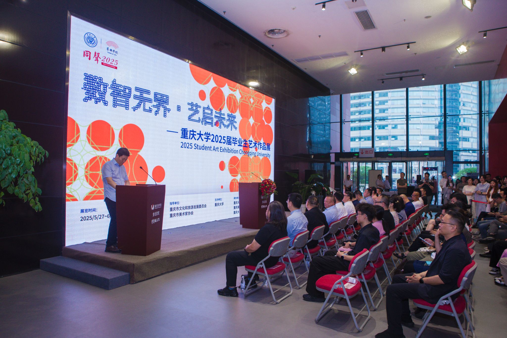 王发荣在致辞中指出,本次展览充分展现了数字智能技术与艺术创作的深度融合,体现了当代青年学子对艺术的独特理解和无限创意,是一场形式多元、内涵丰富的艺术盛宴。他表示今后将进一步加强双方合作深度、效度,推动重庆艺术人才培养创造新的高度。