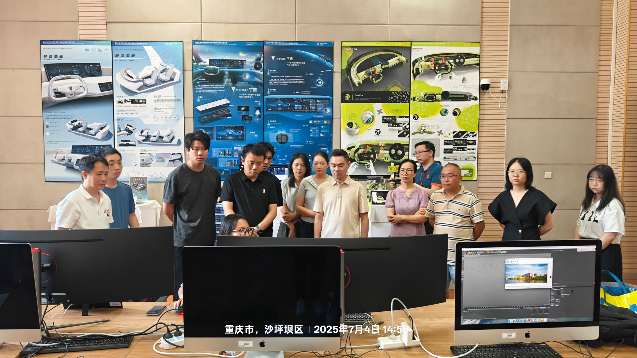 2025年7月4日下午,赛力斯集团整车技术平台总经理助理段文平率人机交互(HMI)领域专家团队一行七人来到重庆大学艺术学院调研,深入考察学院在人才培养、专业建设、科研合作等方面的成果与实践经验。艺术学院副院长夏进军、设计学系副主任刘云国以及设计学系部分教师代表参与了本次调研交流活动。