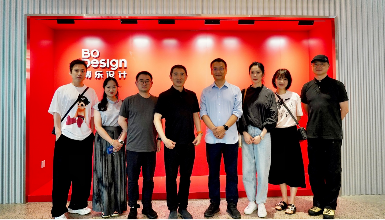 6月27日上午,夏进军一行赴博乐设计开展访企拓岗与设计交流专项活动。设计学系副主任熊喜秋、元宇宙中心主任李刚、设计学系副教授彭科星、赵玺及项之圆、马跃等学院教师参加了此次活动。博乐设计集团创始人、董事长周立钢等接待了*污污漫 一行。