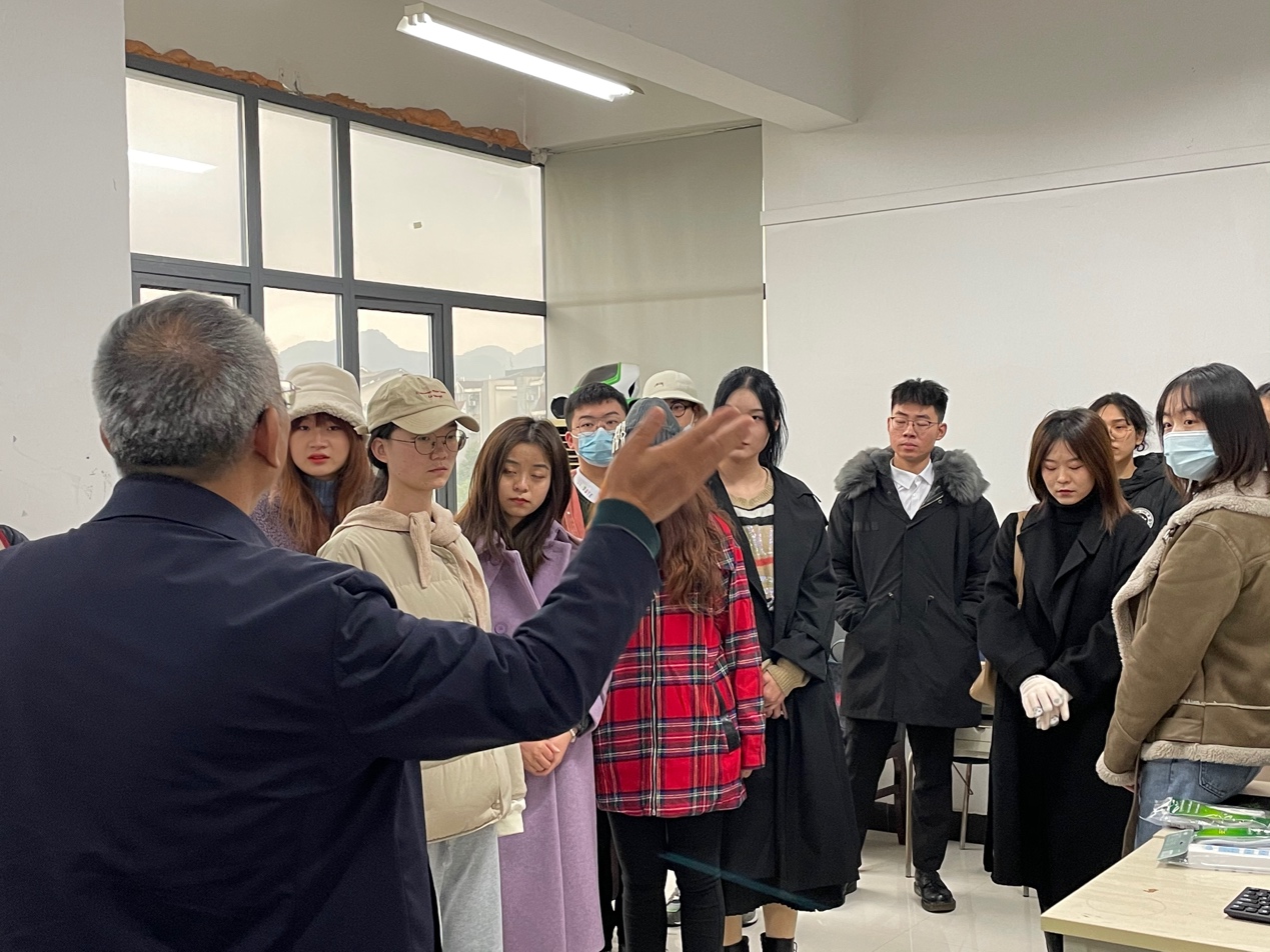 揭牌仪式后,双方进行了交流。段正鑫、李晓辉、王怀钧来到*污污漫 印刷包装工作室参观并对目前同学们参与的包装设计项目进行了指导。