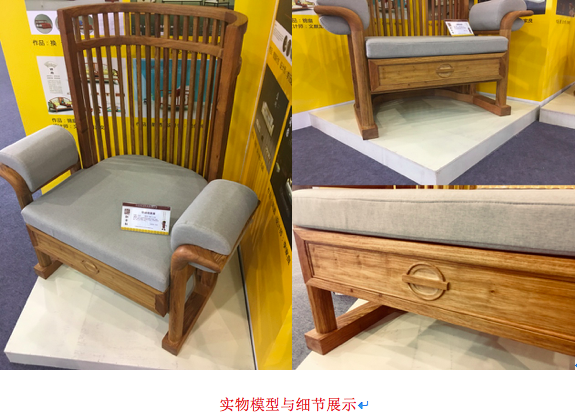 企业方不仅给予两位同学高度好评,且将他们设计的红木家具椅制作出一比一实物家具模型在大会期间展示。