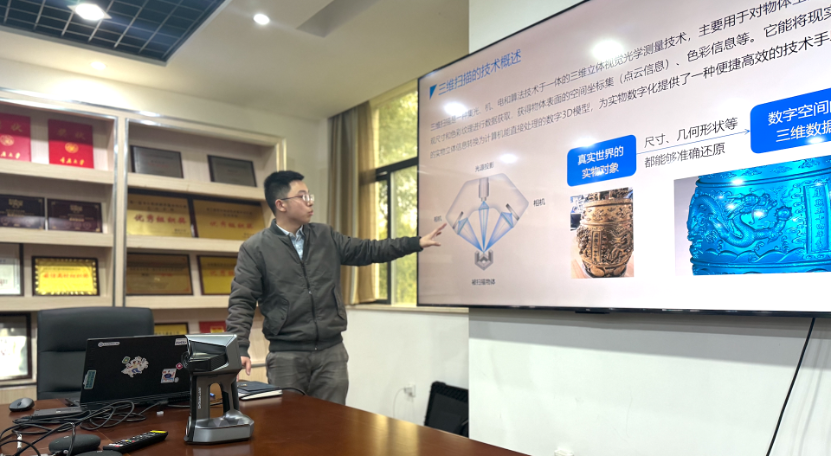 两场培训主题分别为“数字技术赋能文化传承与创新”和“数字人虚拟表演与动作捕捉技术应用”。3D扫描技术能够对文物、艺术品、建筑遗产、工业构件等进行毫米级精度建模,生成数字化档案,为修复与研究提供永久性数据支持。动作捕捉是一种通过光学传感等设备系统记录人体或物体运动轨迹,并将其转化为数字数据的技术,广泛应用于元宇宙与虚拟场景、医疗康复、体育分析、数字文旅、虚拟舞台表演、数字人演艺、游戏文娱等多个领域,能够精准还原真实动作,为虚拟角色或数字形象研究提供真实、流畅的运动表现。实验室拥有面部动捕、手部动捕以及肢体动捕三大模块,可全面覆盖从微观表情到宏观肢体运动的数字捕捉相关需求。