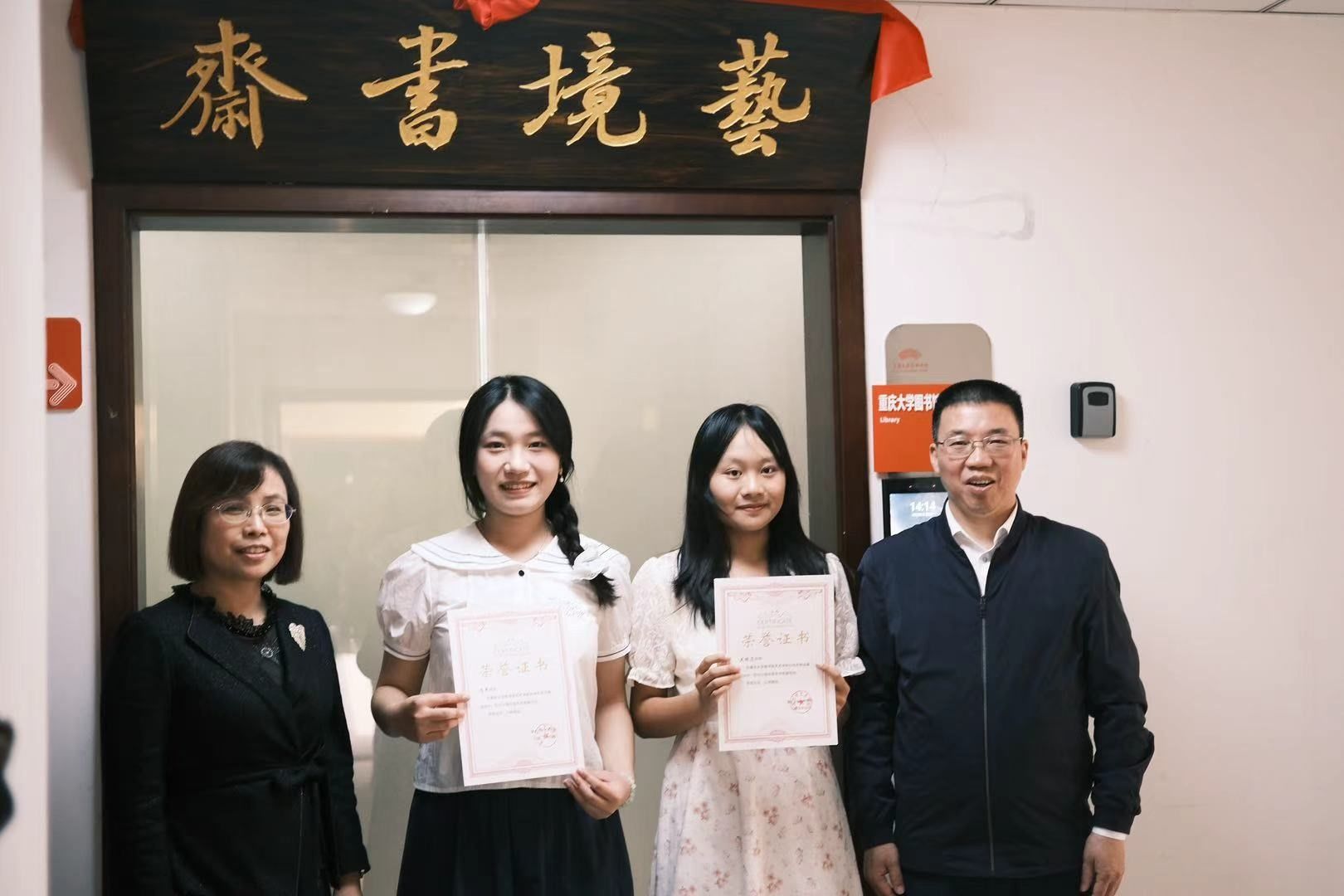为给艺术学院分馆取一个好名字,学院团委开展了分馆命名征集活动,经过广泛征集、学生投票及综合考虑,最终确定了“艺境书斋”之名,既表示此为艺术学科领域(境界)之书斋,也寓意艺术创作、艺术学科建设等“艺无止境”、不断追求“意境”。何栎和蒋华林为参与分馆名称征集并被综合采用的学生颁发了证书。