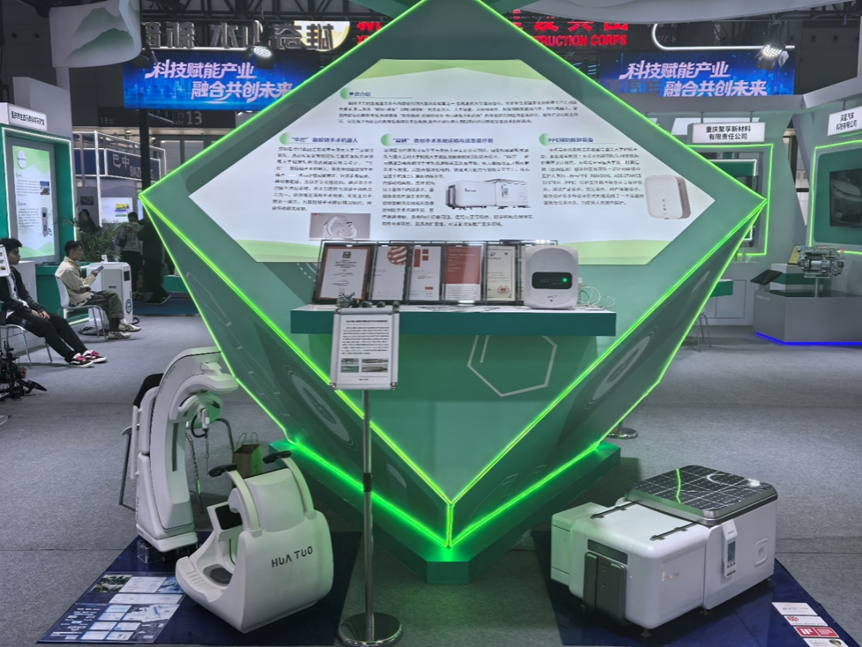在重庆市科技局的组织下,嘉陵江实验室携四件硬核成果亮相,其中三件来自于重庆嘉陵江实验室与重庆大学工业设计中心跨学科创新设计团队研发的智慧医疗创新设计成果。分别为夏进军教授团队与陆军军医大学第一附属医院(西南医院)感染科医务团队联合研发的PPE removal assistance system为个人防护装备脱卸辅助服务系统;彭科星副教授团队与重庆医科大学附属大学城医院唐博教授团队联合设计的“华佗” 腹腔镜手术机器人及“扁鹊”快速部署微创手术系统运输与应急医疗舱。这三项智慧医疗创新设计成果,旨在面向实际需求,推动科研与临床的紧密结合。其中,个人防护装备脱卸辅助系统,着眼于优化医护人员防护流程,旨在为一线工作人员提供更安全、便捷的操作支持。 “华佗”腹腔镜手术机器人与“扁鹊”快速部署微创手术系统及运输应急医疗舱,则分别探索了精准微创手术技术与机动化医疗解决方案的可行性,为未来医疗应用提供了新的思路。此次展出的三项成果是中心践行“设计赋能科技”理念的具体体现,旨在通过跨学科合作,探索工业设计在智慧医疗等前沿领域的应用潜力。