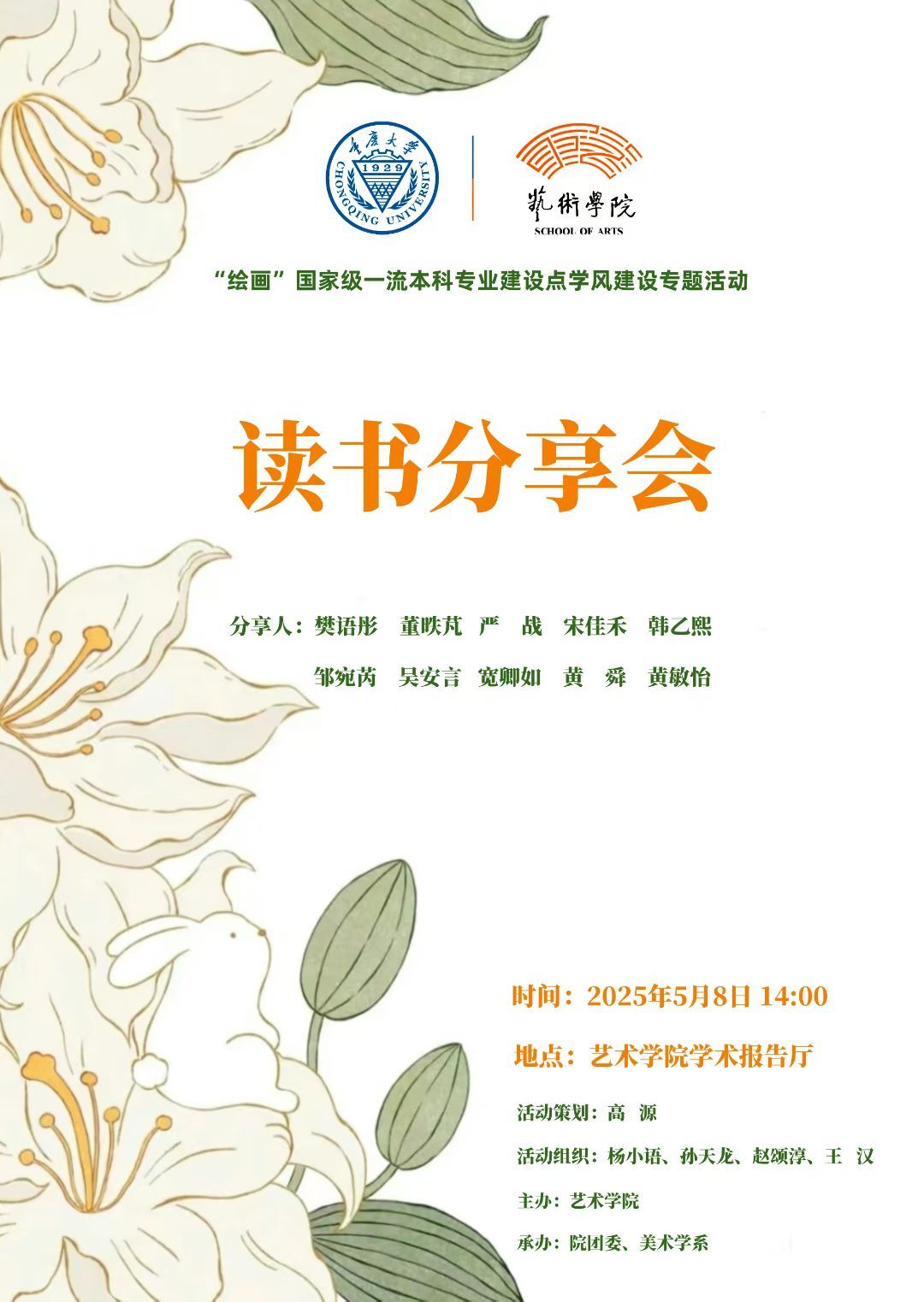 2025 年 5 月 8 日14:00,美术学系在学院学术报告厅开展了学风建设专题活动——读书分享会。