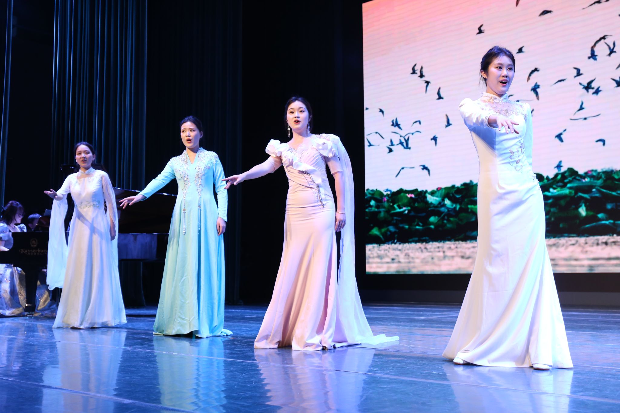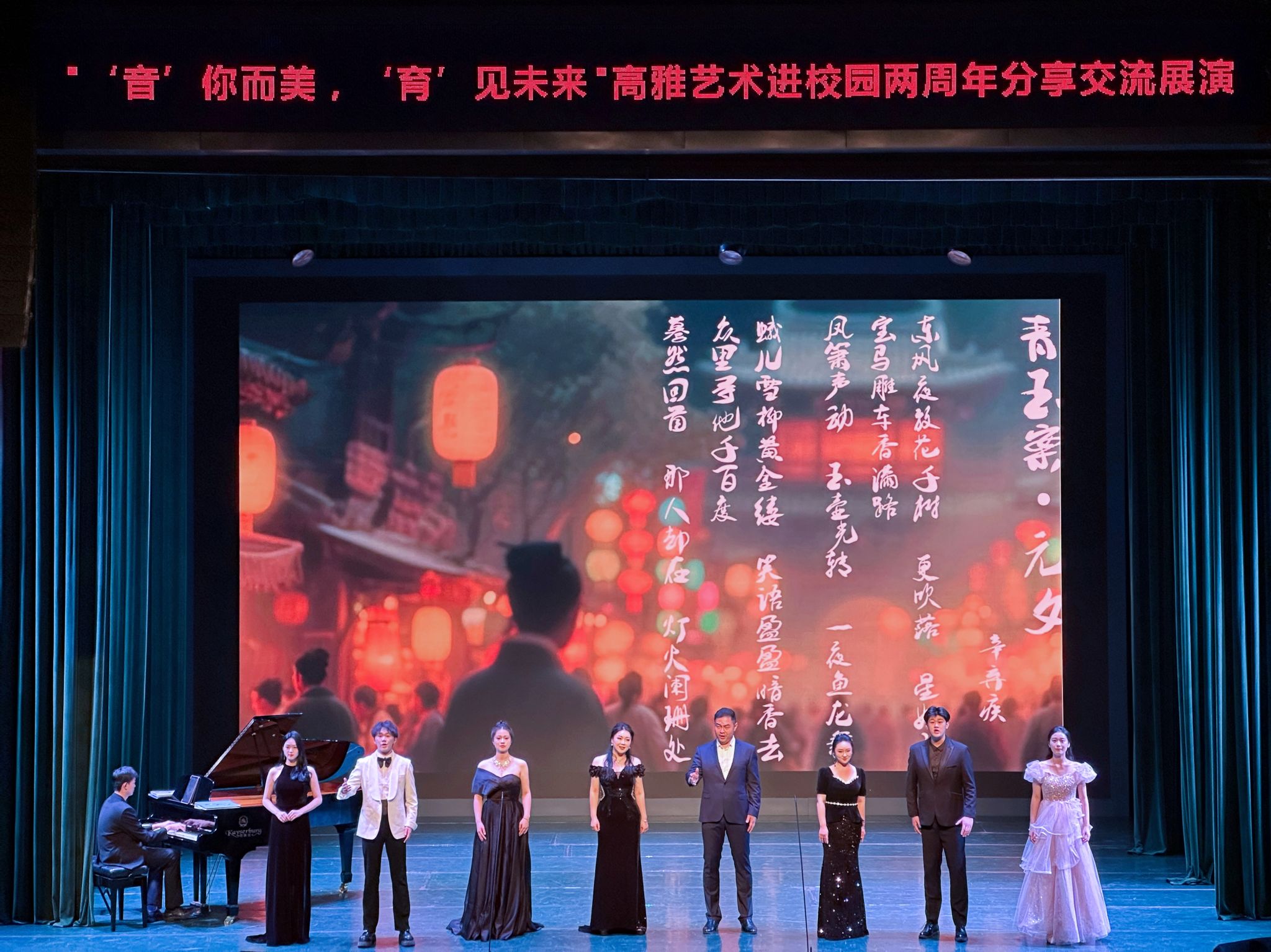 2025年5月28日晚7点30分,艺术学院“‘音’你而美,‘育’见未来”高雅艺术进校园声乐专场活动两周年分享音乐会在重庆大学虎溪校区小剧场举行。重庆巴蜀科学城中学、重庆市大学城第一中学、重庆市第一实验中学、重庆市女子职业高级中学等过去2年内曾参与声乐专场活动的部分中学应邀参加,共同谱写大学和中学美育携手的新篇章。重庆大学教育发展基金会秘书处秘书长许骏、重庆大学艺术学院党委书记蒋华林出席并致辞,重庆大学艺术学院党委副书记王琦等观看演出。活动由音乐系副主任喻思言主持。