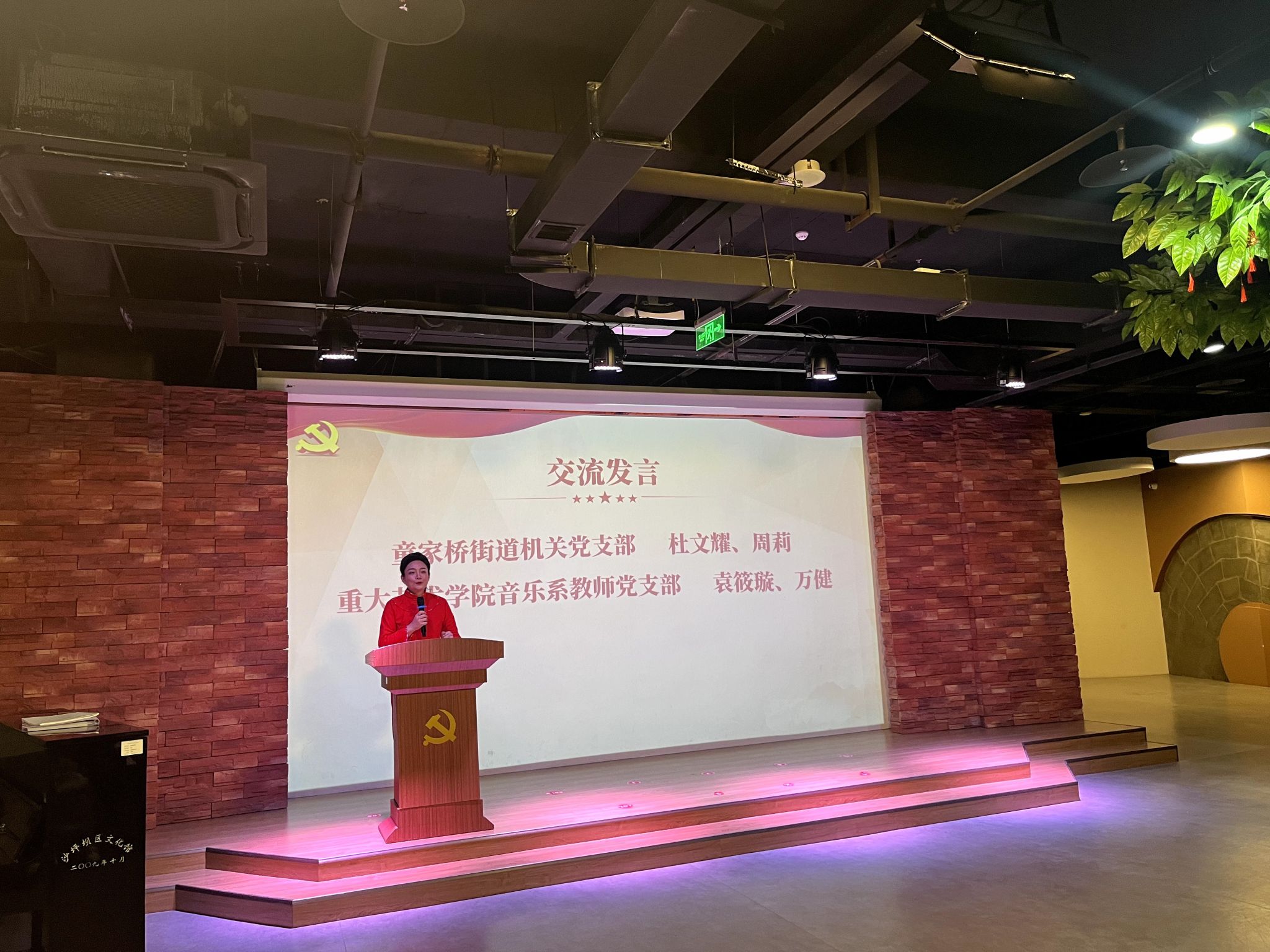 6月20日下午重庆大学艺术学院音乐系教师党支部在童家桥街道红岩党群服务中心,联合街道机关党支部举办了一场别开生面的主题党日活动。活动紧扣“感悟红色精神,筑牢思想根基,以优良作风奋进新征程”主题,通过艺术熏陶与警示教育相结合的方式,引导党员干部锤炼坚强党性、涵养严实作风。音乐系教师党支部书记肖玲、副书记袁筱璇,童家桥街道党工委书记秦湛毅,副书记、办事处主任刘魁萍,组织委员、机关支部书记华亮及两个支部党员参加。活动由音乐系支部党员苏勤主持。