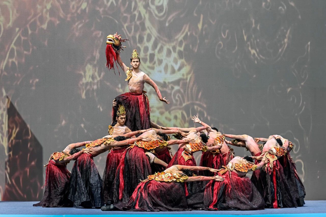 作为市级“文艺两新”实践培育基地的共建单位,艺术学院积极参与此次活动。舞蹈系学生以《嬥兮礼兮》《手龙人》两部作品惊艳全场:前者以汉唐古典舞的婉约韵律重构中华礼仪之美,后者通过现代肢体语言演绎传统民俗“龙”图腾的文化意象,彰显传统与现代的创造性转化。压轴节目《鲲鹏梦想》由音乐系教师袁筱璇与舞蹈系学生联袂呈现,以歌舞交响的形式诠释“鲲鹏展翅”的恢弘意境,将现场氛围推向高潮。