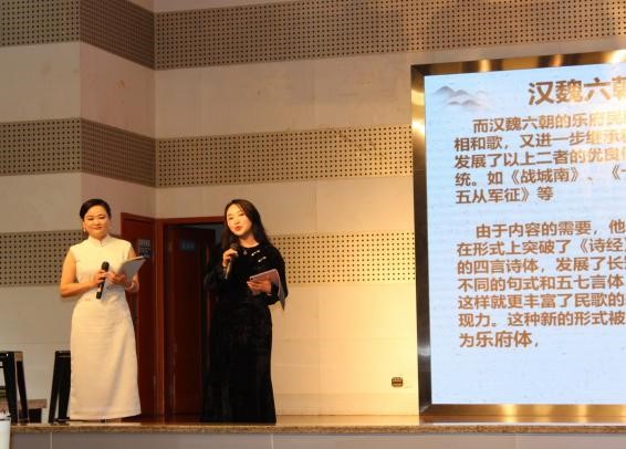 接着,两位老师讲解了不同地域的民歌《茉莉花》与《绣荷包》的风格和特点。因为不同地区的气候、地理环境、语言、审美情趣等差异,各地民歌形成了千姿百态的形态:江苏的婉转细腻、河北的豪爽淳朴、四川的活泼热辣、山东的朴实直爽、陕北的内敛含蓄......老师们带领大家领略了中国民歌深厚的文化底蕴和广阔的艺术生命力。